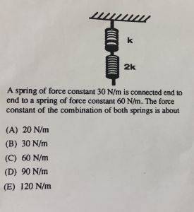 k_t = F / [(3F) / (2k)] = (F * 2k) = (3F) = (2/3) * k = (2/3) * 30 = 20 N/m?