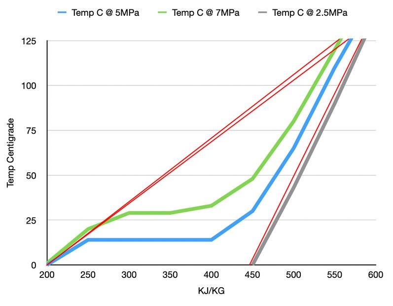 If we need specific temperatures, suppose the inlet of the heat exchanger is 1000C gas and the outlet is condensed fluid 12C…