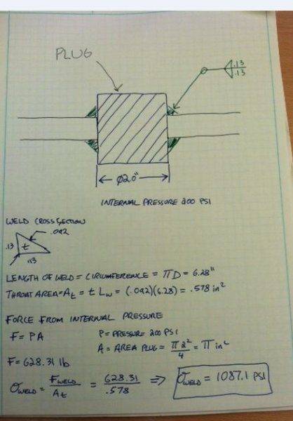 - Another participant suggests that the calculation of stress in the weld appears to be acceptable.