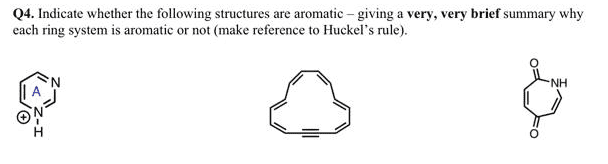 I'm having problems with the last molecule. I said that the first molecule was indeed aromatic because it has 6 pi electrons and obeys the 4n + 2 rule. The second one is not aromatic because it has 16 pi electrons. But for the last molecule, my reasoning for why it's not aromatic is that although it has 6 pi electrons, the electrons in the p orbitals of the carbons from the carbonyls don't occupy the p-orbitals of the oxygen, the two p-orbitals just overlap. So I don't think the p-orbitals of those carbons count towards aromaticity in the ring because those orbitals overlap with the p-orbitals on the oxygens and not the p-orbitals of the adjacent carbons. I was thinking that those p orbitals don't contribute to resonance stabilization in the ring. There are indeed 6 pi electrons, but i don't think the conjugated pi-orbital system criteria is satisfied. Is my reasoning on the right track? Any help would be appreciated. Thanks!