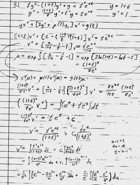 The problem has ty'' - (1 + t)y' + y = (t^2)e^2t