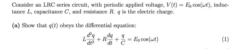 - Participants discuss the idea of substituting a proposed solution into the differential equation to verify its validity. There is also mention of deriving the equation from basic circuit principles as a potential approach. Questions arise about the interpretation of the problem and whether the focus should be on proving the formulation of the differential equation rather than finding a solution.