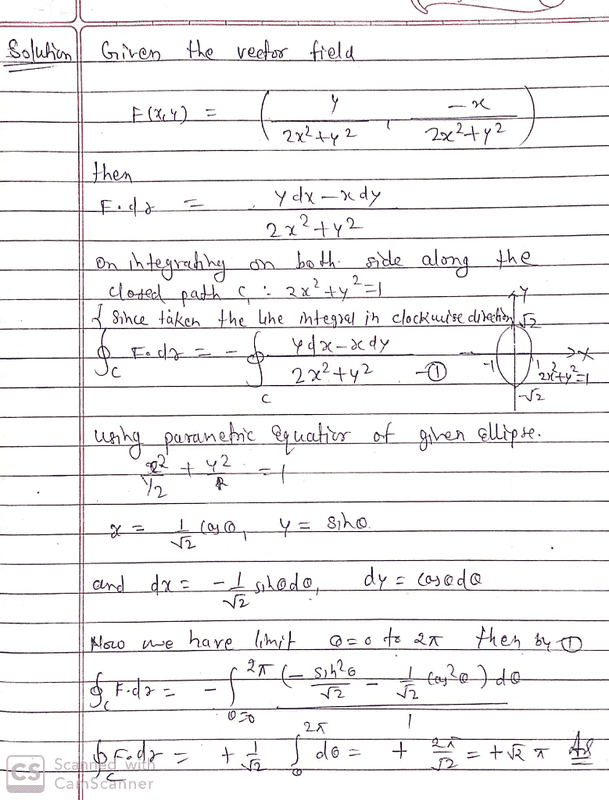 F(x,y)=(y/(2x^2+y^2) ; -x/(2x^2+y^2)) along the ellipse of equation