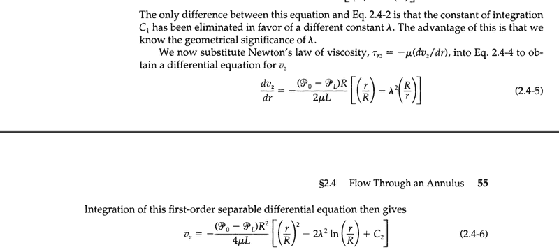I am currently calculating a velocity profile of an annular flow. Unfortunatelly I am not understanding the following step: