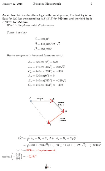 - A later reply provides a calculation for the overall displacement using a specific formula, presenting an approximate result of 881 km.