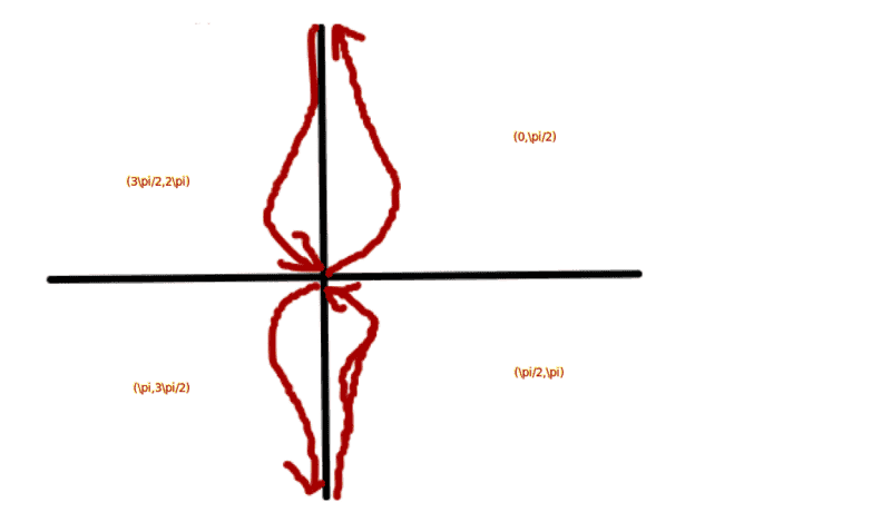 I thought of something that suggests that the curve might not be defined at the origin. In the parametrization ##r=\tan t=\frac{r\sin t}{r\cos t}##, I think that it is implicitly assumed that ##r\neq0##. But plugging in ##t=0## contradicts this.