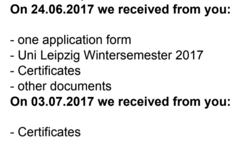 Just got my confirmation from uni-assist that my application is complete and will be forwarded to Uni Leipzig, which is a big step to admission already!