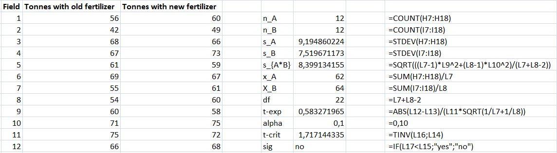 - At significance level $a = 10\%$ can we say that the new fertilizer is more efficient than the old one?