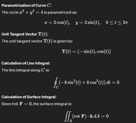 - Verify Stokes' theorem in the plane where f(x,y)=y2i+x2j