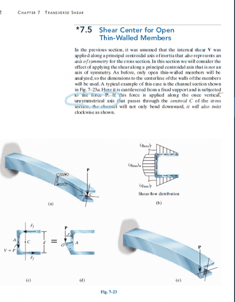 The discussion centers on the shear flow direction in beam mechanics, specifically questioning whether the shear flow should be directed from the bottom to the top of the beam to effectively prevent twisting. The moments generated by the applied force (P) and the shear flow are both counterclockwise, leading to confusion about their interaction. The resultant shear flow, represented as P times e, indicates the distance at which the load must be applied to minimize twisting. Clarification on the correct shear flow direction is essential for accurate beam design.