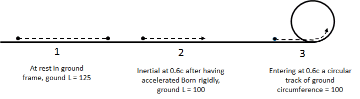 - Concerns are raised about the feasibility of achieving Born rigidity in a circular motion, with references to the limitations of such acceleration in the context of the Ehrenfest paradox.