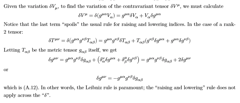 - Others argue that the Leibniz rule must be applied when calculating variations, suggesting that this impacts the tensorial nature of the variations.