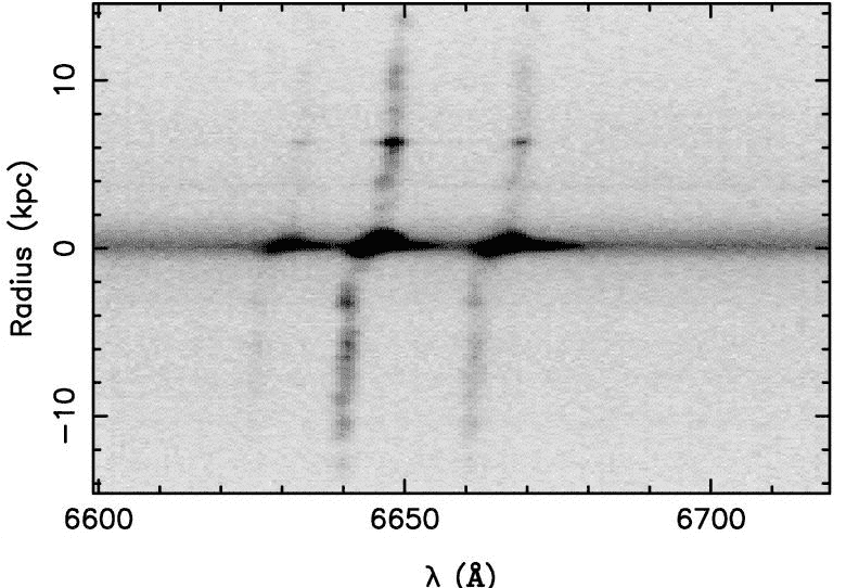 - Questions arise about the breadth of spectral lines at the galaxy center, with speculation about whether it results from over-exposure or the finite size of the spectrograph slit.