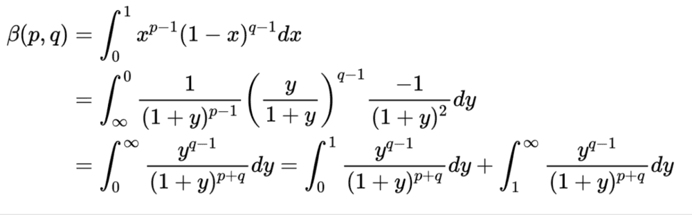 \beta(p, q)=\int_{0}^{\infty} \frac{y^{q-1}}{(1+y)^{p+q}} d y