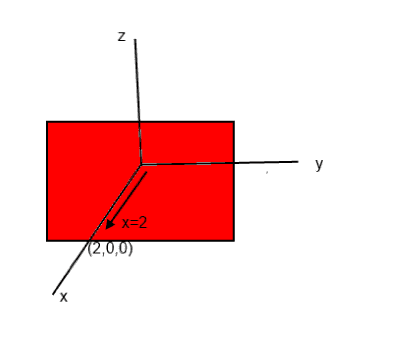 I think I'm wrong because each point in this plane has non zero y & z value...they are not having y=0& z=0 everywhere all the time although x=2 everywhere on this plane...so my drawing to plane (2,0,0) is wrong.