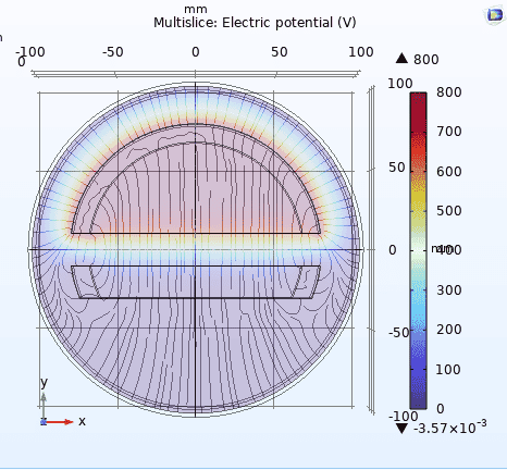 - In this COMSOL model, I have a part given potential (-800v) while the other is grounded.