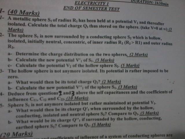 3) a) if V2=0 then charges on the surface of the shell will be zero then Q2 =0.