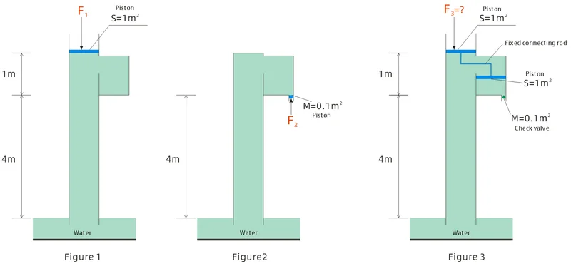 Figure A calculates the static force F1 correctly om the piston with the one column of water.