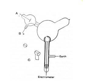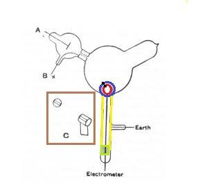 As part of an ongoing project I have been working on, I have been reading through J.J. Thomson's Cathode Ray Experiment. As part of his setup Thomson writes, "The arrangement used was as follows: — Two coaxial cylinders (fig. 1) with slits in them are placed in a bulb connected with the discharge–tube; the cathode rays from the cathode A pass into the bulb through a slit in a metal plug fitted into the neck of the tube; tins plug is connected with the anode and is put to earth. The cathode rays thus do not fall upon the cylinders unless they are deflected by a magnet. The outer cylinder is connected with the earth, the inner with the electrometer."