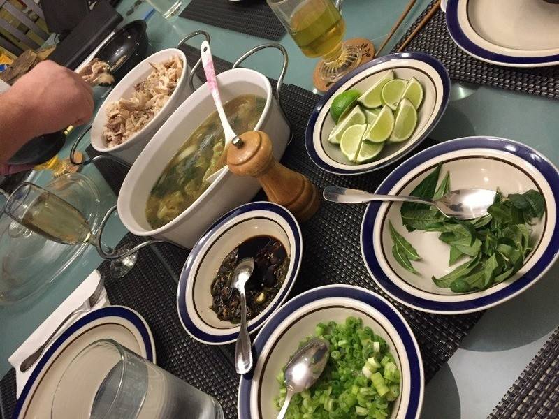 I'm having people over for NY's eve this evening, and instead of the usual party/dinner stuff, I decided to go Asian. It is traditional to serve noodles for New Year in Asian/Chinese culture, so I'm making my own homemade Southeast Asian Noodle soup with chicken. This has a remote resemblance to the Vietnames Pho where it rice noodles served with a flavorful, clear broth.