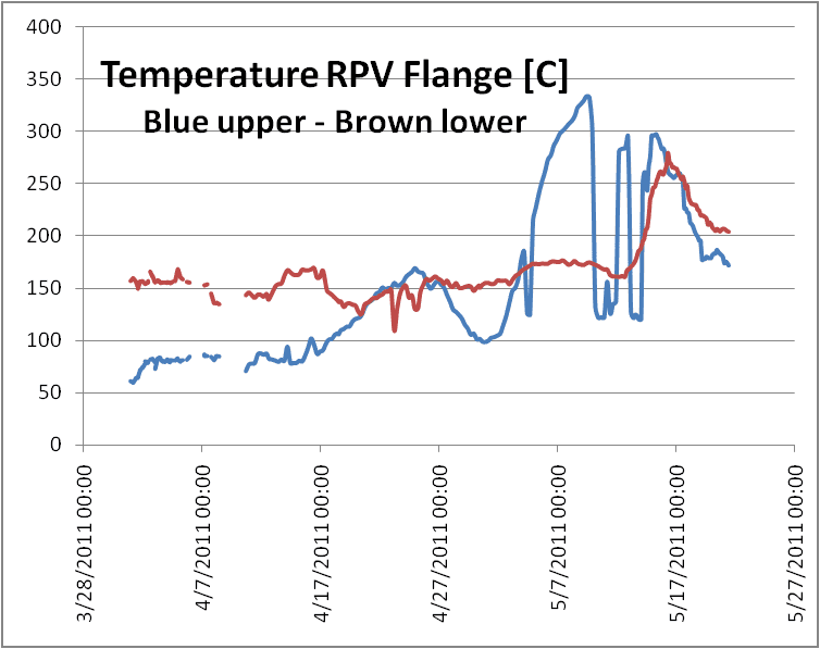 edit: Just noticed at http://ex-skf.blogspot.com/2011/06/arnie-gundersen-on-and-off.html" commenters claim that the CTBTO Iodine spikes match up with increased temps at reactor 3's RPV flange.