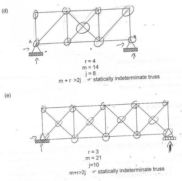 The forum discussion centers on calculating truss reactions using the parameters r (number of reactions), m (number of truss members), and j (number of joints). The user questions the accuracy of joint counts for specific truss members, asserting that joint d should have j=9 and joint e should have j=14. Additionally, the discussion highlights the importance of considering the connection of x braces in determining the degree of indeterminacy, emphasizing that unconnected braces do not affect the calculation of joint counts.