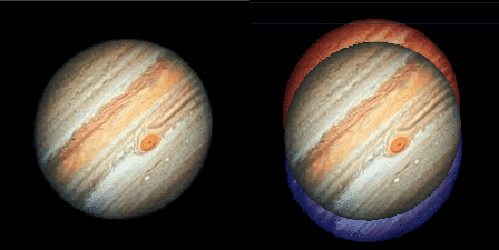 - The OP describes Jupiter as having a red flash at the top and a blue flash near the bottom, suggesting possible causes like refraction or diffraction.
