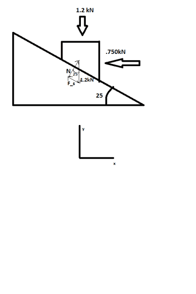 ΣFx = Nsinθ - Fscosθ - .750kN = 0