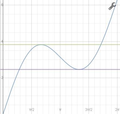 For what values of x in [0,2π] does the graph of f(x)=x+2sinx have a horizontal tangent?