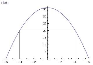 A rectangle is inscribed between the x-axis and the parabola y=36-x^3 with one side along the x- axis.