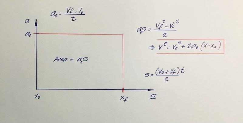 The discussion revolves around the derivation of kinematic equations from graphical representations, specifically focusing on the relationships between velocity, displacement, and acceleration. Participants explore whether these equations can be derived purely from graphs without resorting to algebraic expressions.