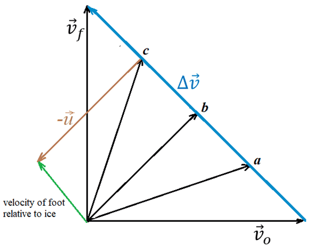 By running on the ice, the boy turns his velocity vector by 90◦ in the minimum possible time, so