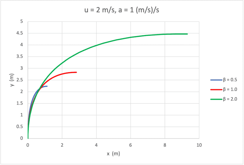 What I do not understand is the trajectory taken. Supposedly, because acceleration is constant, the answer is parabola. How is this arrived at? For example, acceleration in circular motion (at constant speed v) is also constant, so I do not see why constant acceleration means that it must be a parabola (and not a circle, or anything else!).