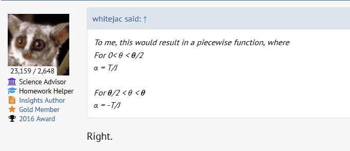 Θ = 0.5(r*Tm / RL*Jm)*t2