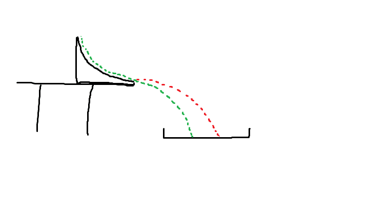(a) Initially the ball bearing rolls down the ramp without the marble in a place. The ball bearing falls a verticle distance of 1.2m and lands a horizontal distance 95cm forward of the end of the ramp. Show that the speed of the ball bearing leaving the ramp is about 2ms-1