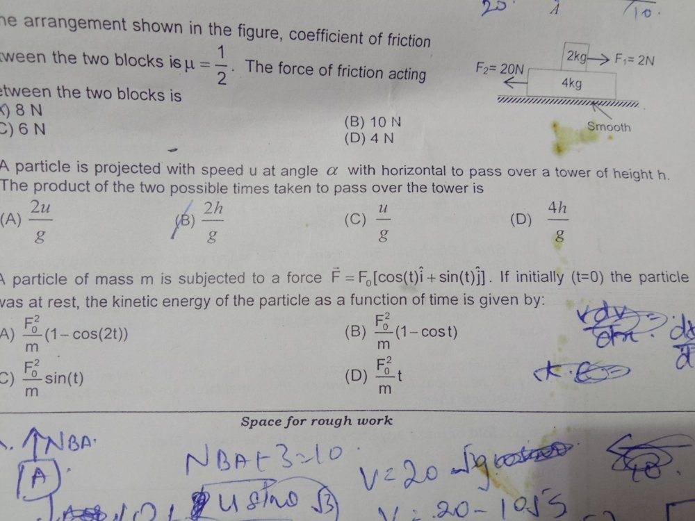 I got acceleration by dividing force by m then replaced a by dv/dt and then integrated it to get velocity as a fxn of time and hence got kinetic energy but problem is my ans does not match with any option can someone please compare their ans