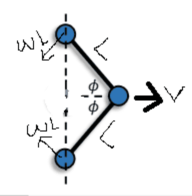 - What is the total kinetic energy of this body that is made of 3 identic mass m and massless rods?