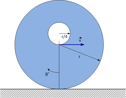 The cylinder is rolling without slipping on a horizontal plane. Find the kinetic energy in terms of θ and θ' where θ is the angle between vertical and the line joining the center of the original solid cylinder and the center of the cavity.