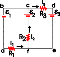 E1 - R1I1 - R2I2 - E2 = 0 and E2 - R2I2 - E2 - I3R3 = 0