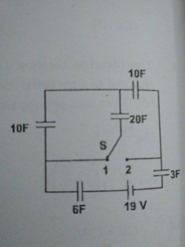 (B)Charge on 3F capacitor is 650/19 C after S is transferred from 1 to 2.