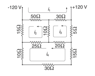 The discussion revolves around applying Kirchhoff's voltage law (KVL) to a circuit with three loops, focusing on determining the loop currents i1 to i4. The context is primarily homework-related, with participants seeking assistance in formulating and solving the relevant equations.