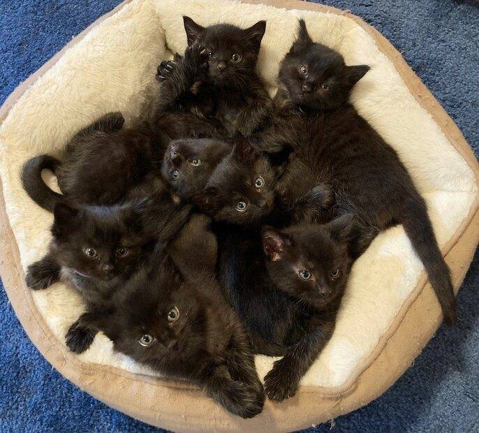 Looks like a big black blob with 7 heads. Lol.JT Smith said:Bar codes indeed. Their stripes were not identical. The eyes of one them was rounder plus she was physically smaller. The thickness of the fur and the overall shade differed between the kittens. The way they moved and behaved was also telling. I learned to see those differences.