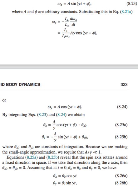 Equations 8.23 and 8.24 are integrated into 8.25[a|b], but I think signs are wrong. Shouldn't be negative cosine in 8.25a and positive sine in 8.25b ?