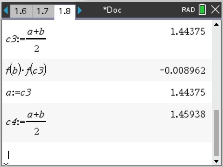 So our solution is $\displaystyle x \approx c_4 = 1.45938 $.
