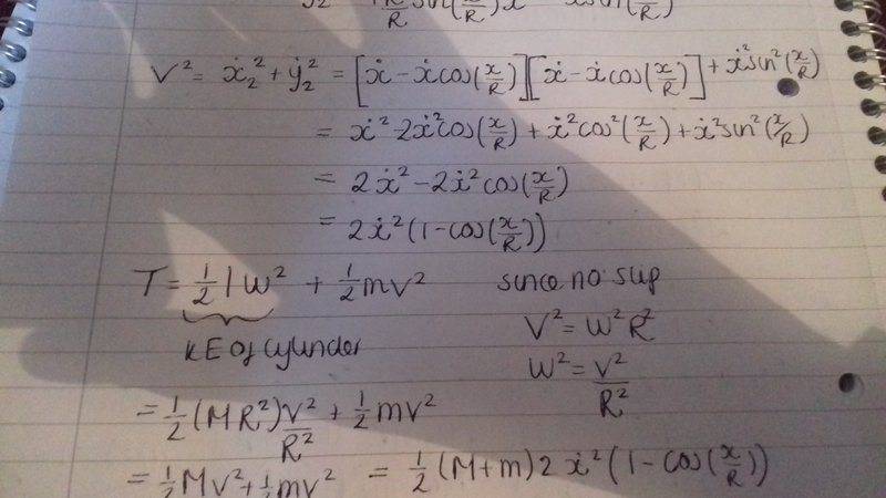 L = (x'^2)(M+m)(1-cos(x/R)) + mgRcos(x/R)