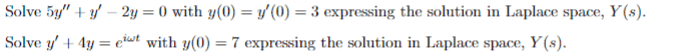 The discussion centers on verifying solutions to Laplace Transform homework problems. The first solution presented is Y(s) = (15s + 18)/(5s^2 + s - 2), which is confirmed correct by another participant. The second solution, Y(s) = (7s - 7iw + 1)/((s + 4)(5 - iw)), requires additional clarification and a request for the original work to ensure accuracy.