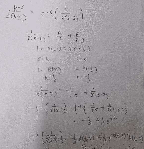 find the laplace transform of (e^-s) / [ (s)(s-3) ]