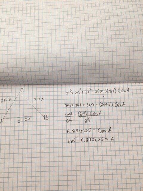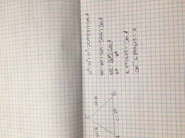 There are unresolved issues regarding the interpretation of the cosine rule and the calculations leading to the determination of angles. The discussion also highlights potential confusion arising from the presentation of the triangle in the attached image.