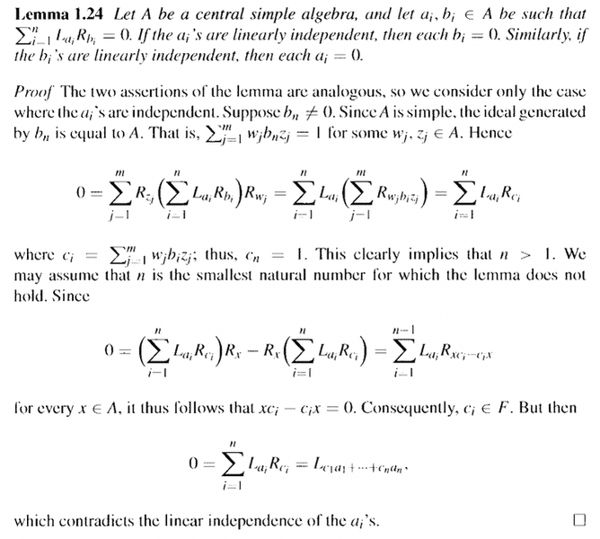 " ... ... Since ##A## is simple, the ideal generated by ##b_n## is equal to ##A##.