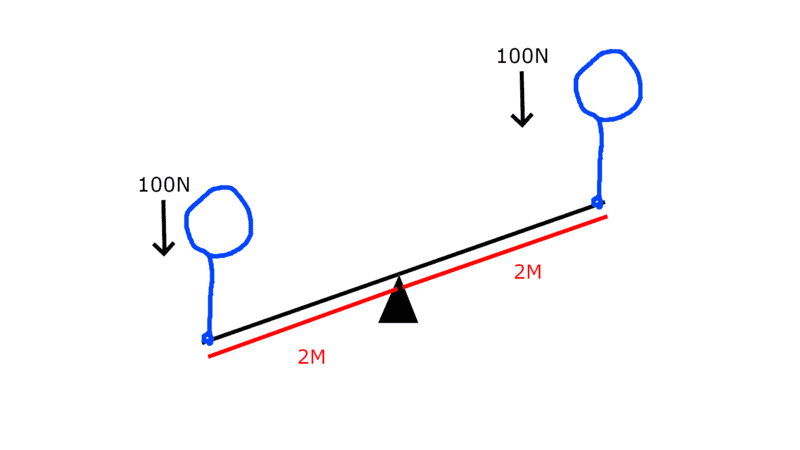 So, let's say we have a lever with support exactly in the middle of it, so both sides arms are exactly the same length.